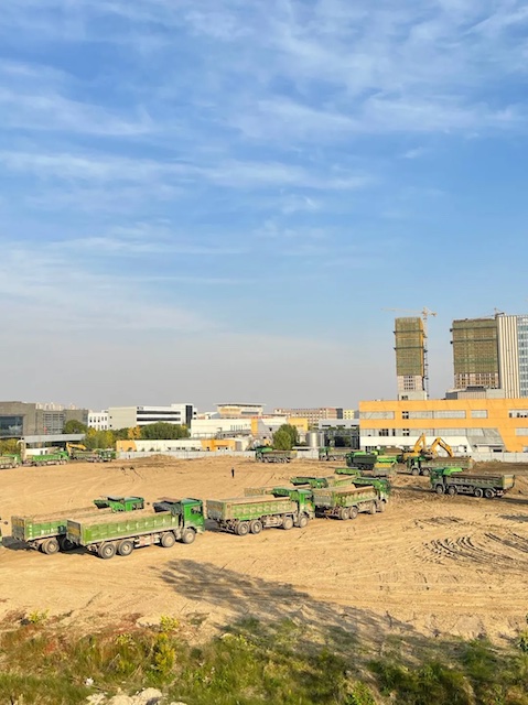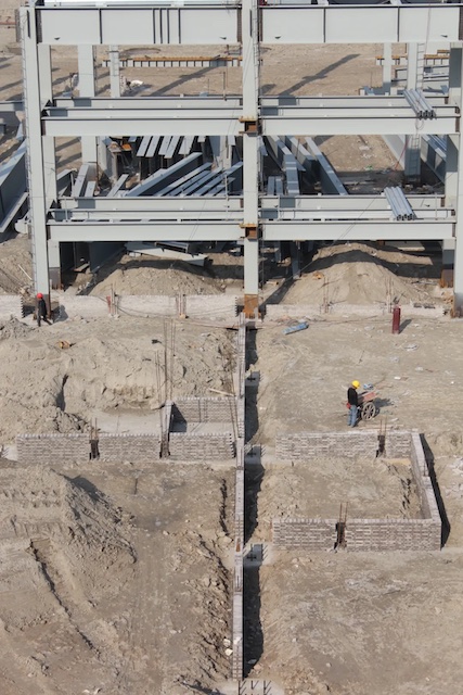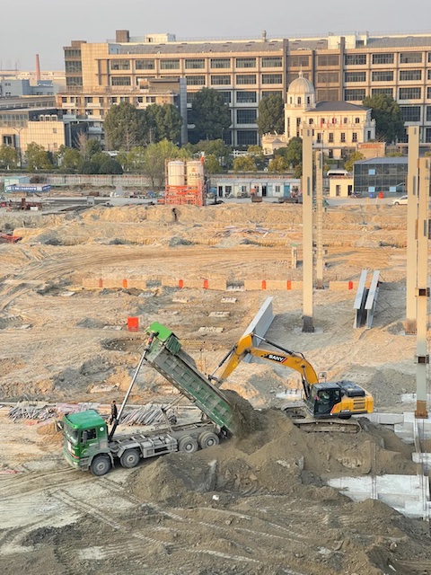 從平整地面到立起鱗次櫛比的主結(jié)構(gòu)鋼柱,從一個個方形的宛如寶石礦的坑到成片接連起的樓板,代表制造業(yè)新形態(tài)的載體有了輪廓。