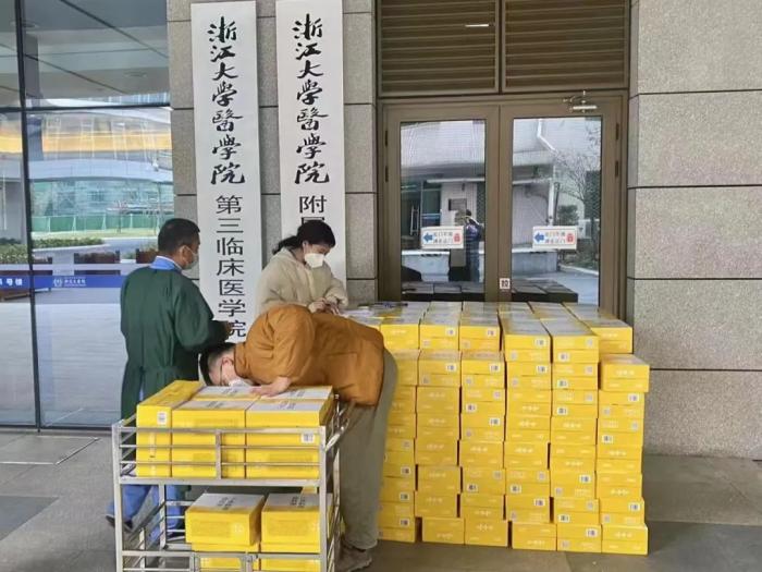 2022年的最后一個(gè)工作日,浙江大學(xué)醫(yī)學(xué)院附屬邵逸夫醫(yī)院收到了來(lái)自浙江馥莉慈善基金會(huì)捐贈(zèng)的1000箱八寶粥。