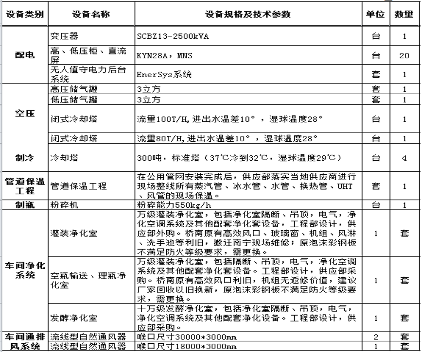注:以上部分標段設備清單及參數可能會有調整,以我司技術部門最終確認為準。